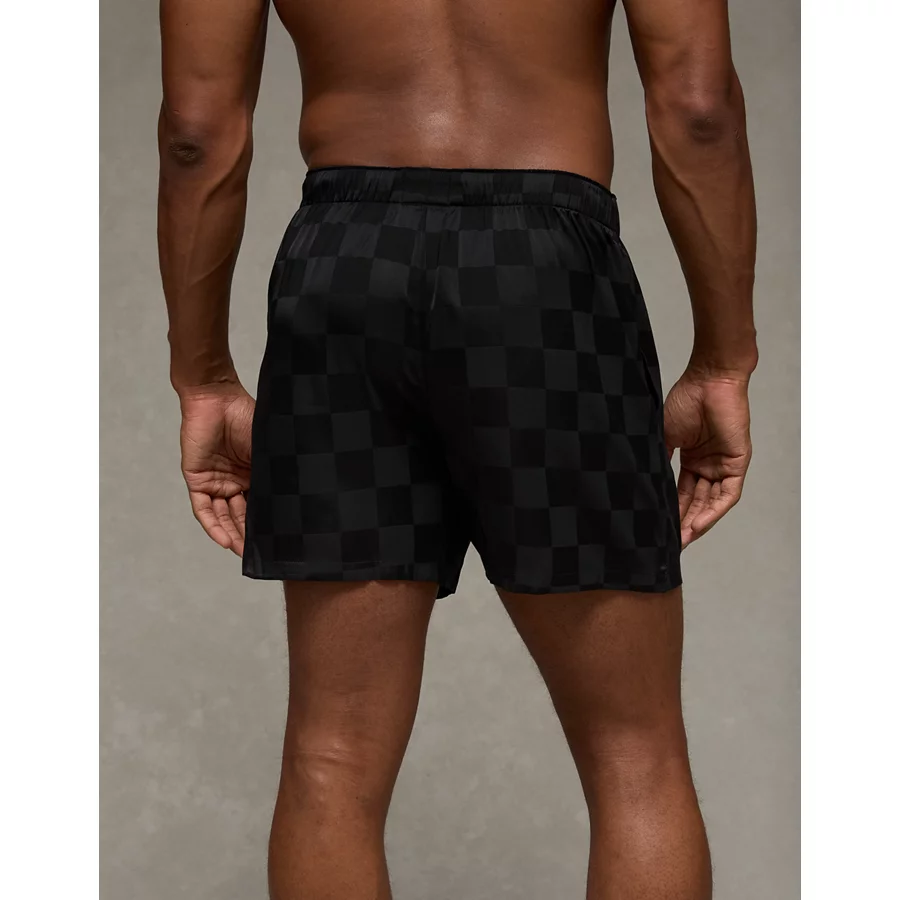 AEO Men’s Checkerboard Satin Pocket Boxer Short – Black