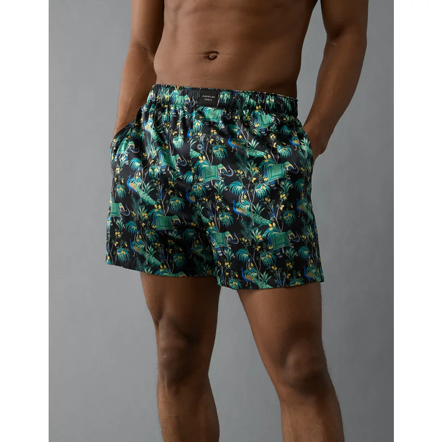 AEO Men’s Elephant Tapestry Satin Pocket Boxer Short – Black