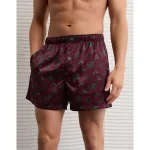 AEO Men’s Holly Satin Pocket Boxer Short – Burgundy