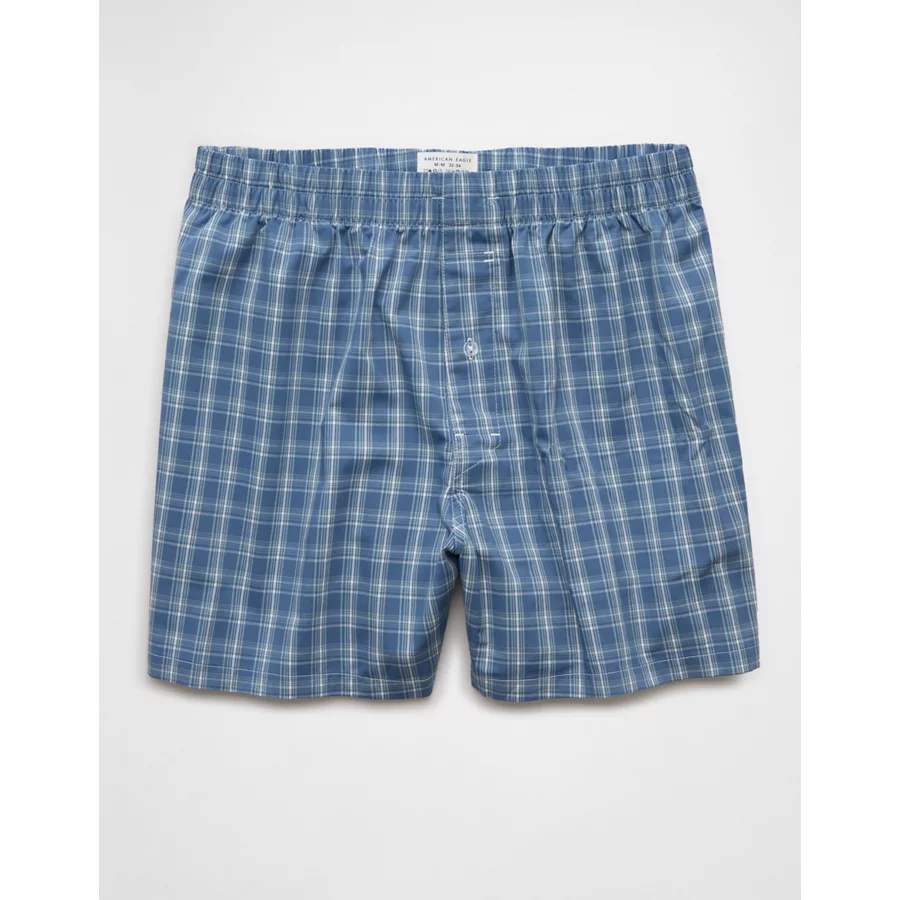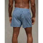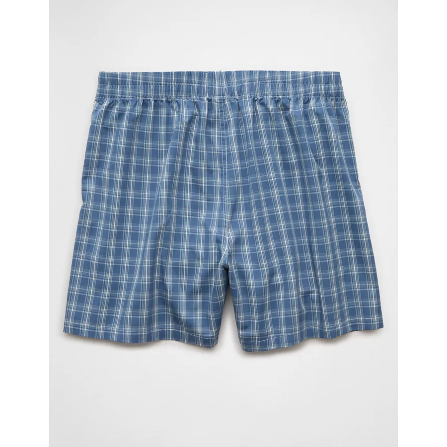AEO Men’s Plaid Poplin Pocket Boxer Short – Washed Blue