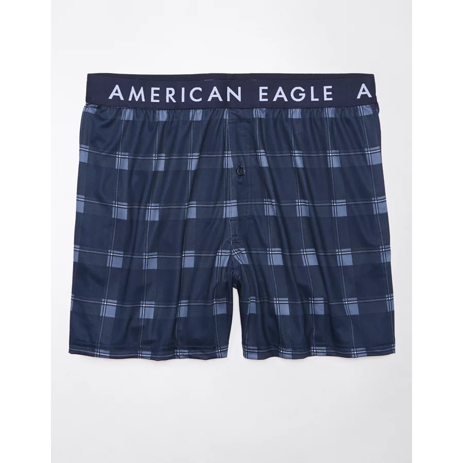 AEO Men’s Plaid Ultra Soft Boxer Short – Rich Navy
