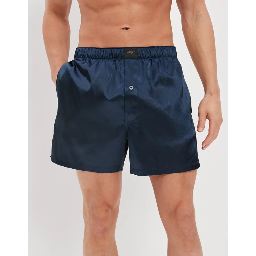 AEO Men’s Solid Satin Pocket Boxer Short – Navy