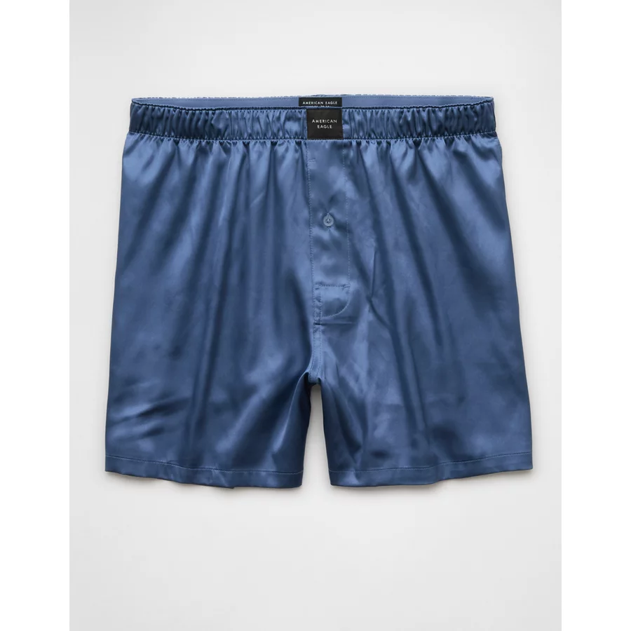 AEO Men’s Solid Satin Pocket Boxer Short – Washed Blue