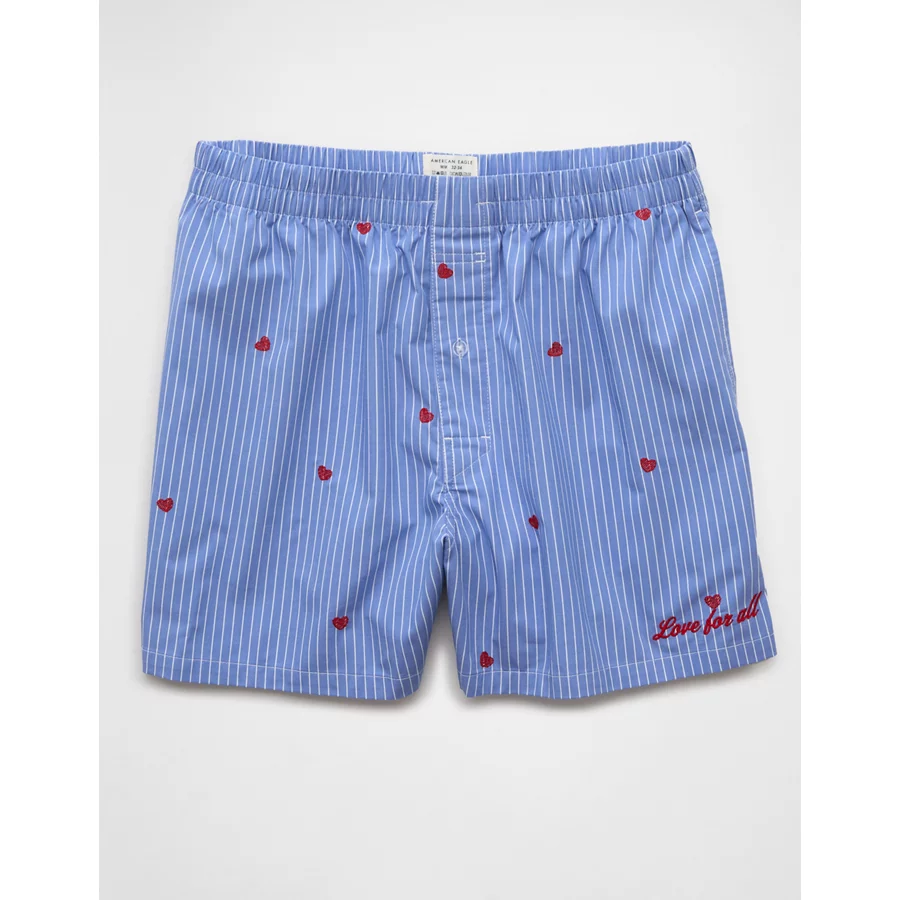 AEO Men’s Striped Hearts Poplin Pocket Boxer Short – Blue