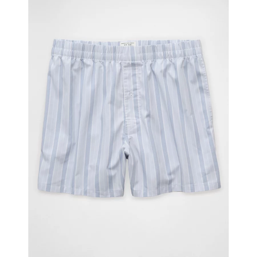 AEO Men’s Striped Poplin Pocket Boxer Short – Light Blue