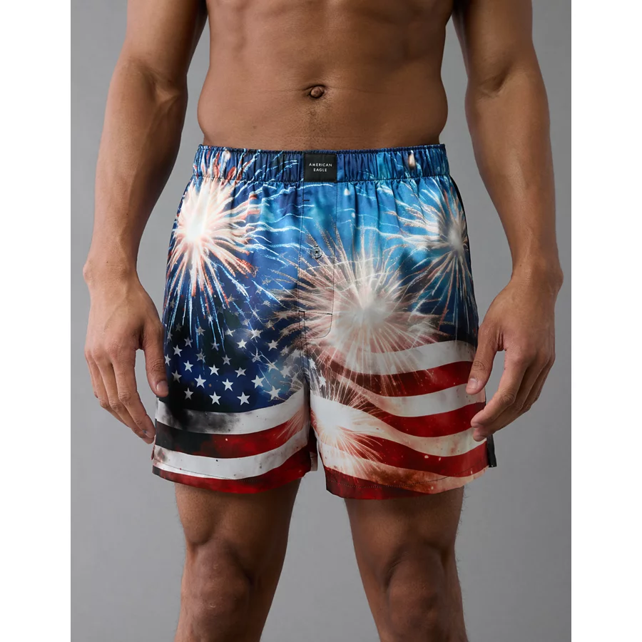 AEO Men’s USA Fireworks Satin Pocket Boxer Short – Blue