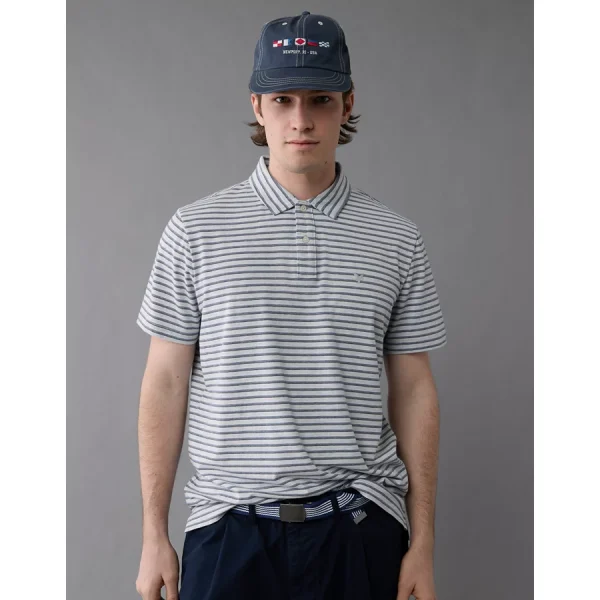 AE 24/7 Club Logo Striped Polo Shirt – Gray