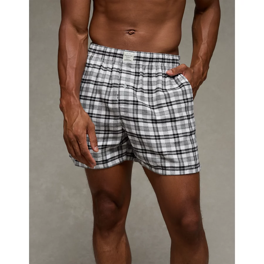 AEO Stretch Plaid Classic Boxer Short - Heather Gray