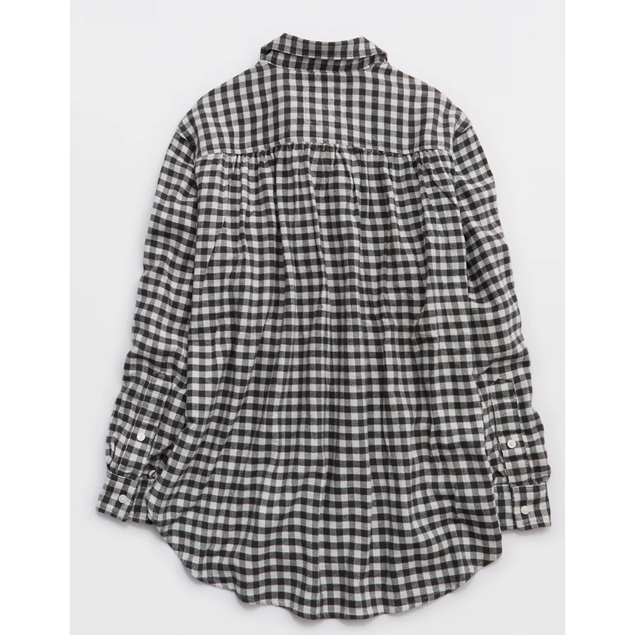 Aerie Anytime Fave Flannel Button Down Shirt - Smoked Gray