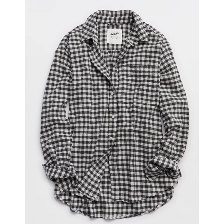 Aerie Anytime Fave Flannel Button Down Shirt – Dark Shadow
