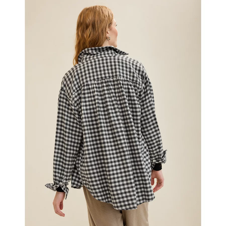 Soft, cozy flannel with a fun plaid printOversized chest pocket (for ALL your sunshine)Functional buttons 100% CottonMachine washImported Oversized and