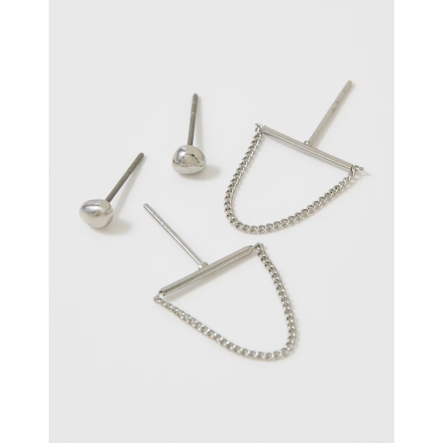 Aerie Bar And Chain Earring 2-Pack – Silver