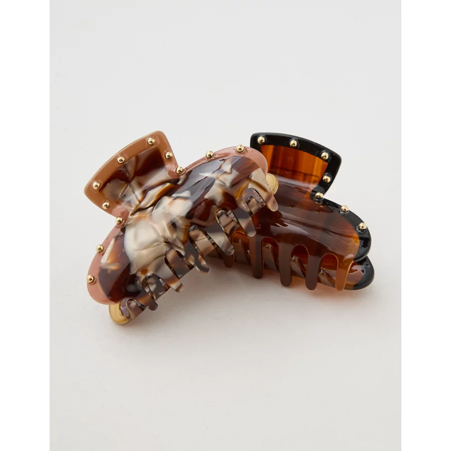 Aerie Beaded Torte Claw Clip 2-Pack – Brown