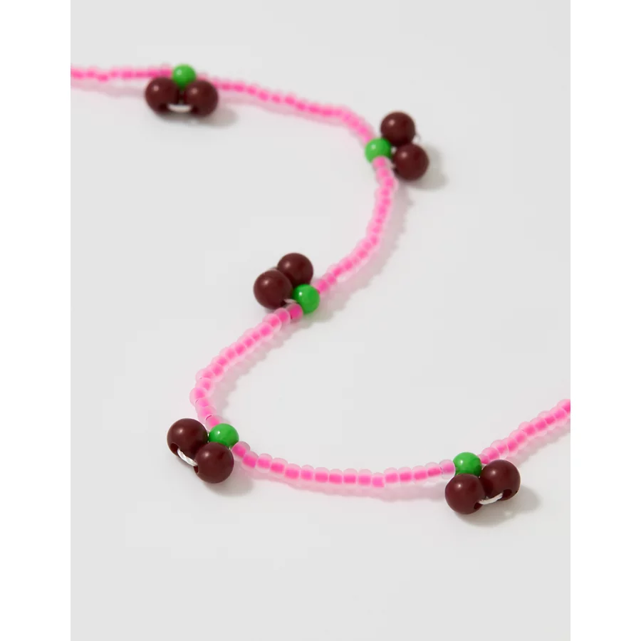 Aerie Cherry Beaded Necklace – Pink