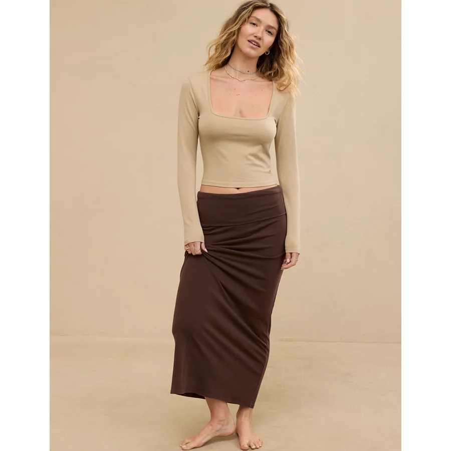 Aerie Chill Up Foldover Maxi Skirt - Soft Stone
