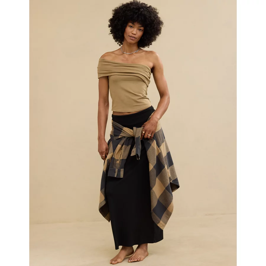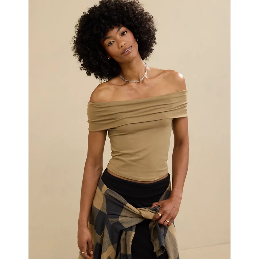 Aerie Chill Up Off The Shoulder Top – Soft Stone