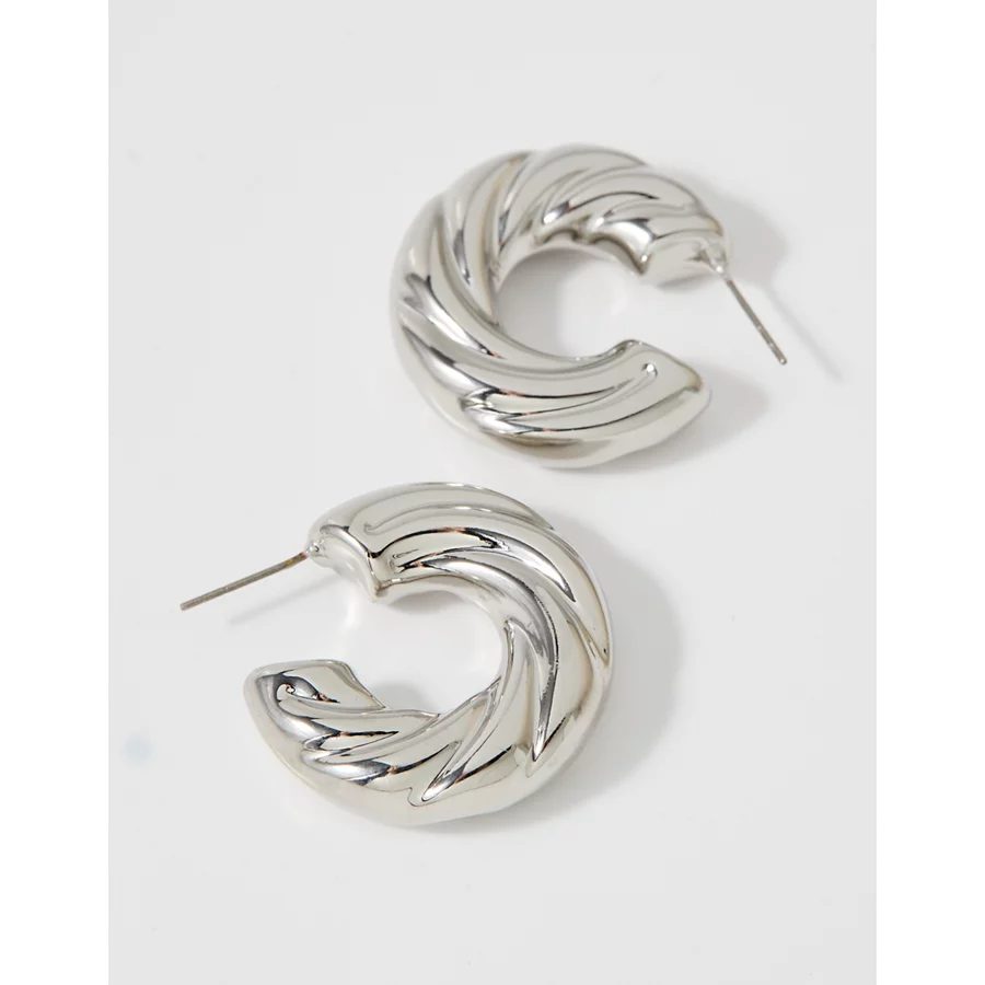 Aerie Chunky Croissant Hoop Earrings – Silver