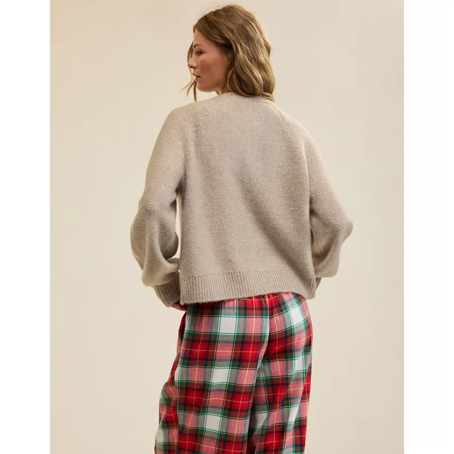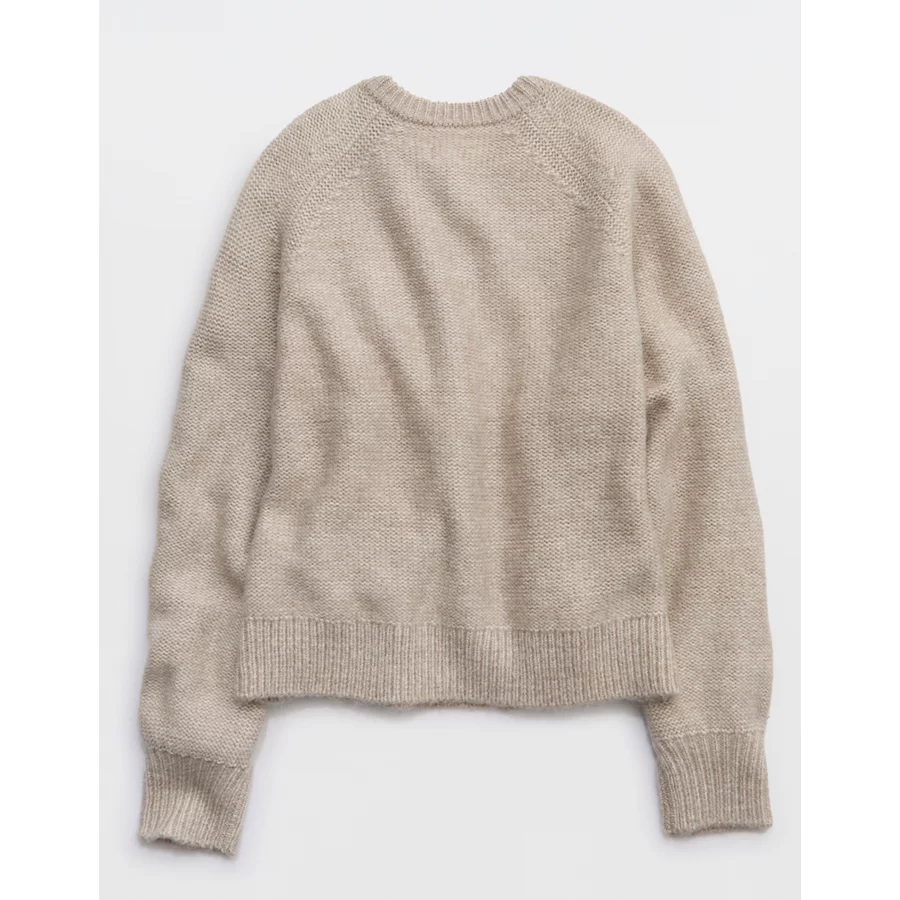 Real Good Everyday yarnRolled necklineRibbed trim on cuffs and hemPointelle deets and split cuffs on the sleevesStripedAccessibility deets: over-the-head access
