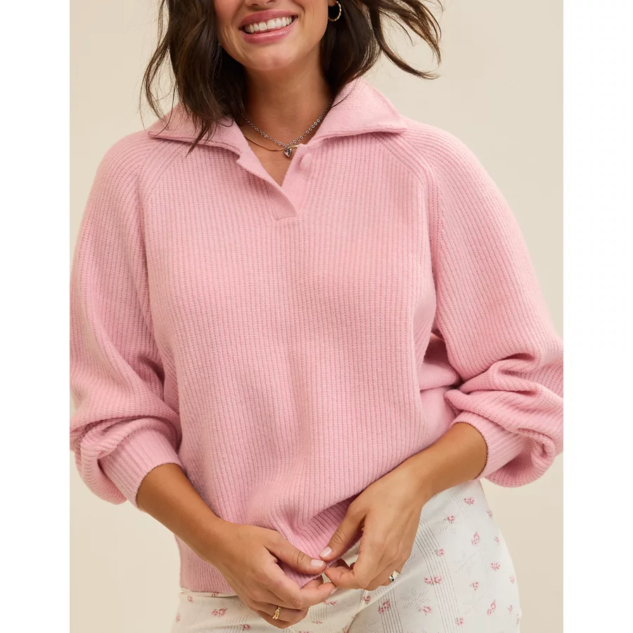 Aerie Classic Quarter Button Sweater - Heather Fawn