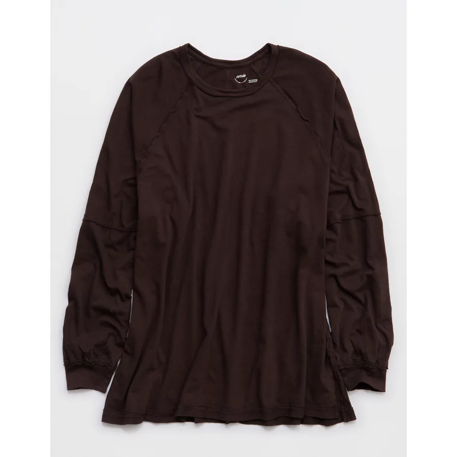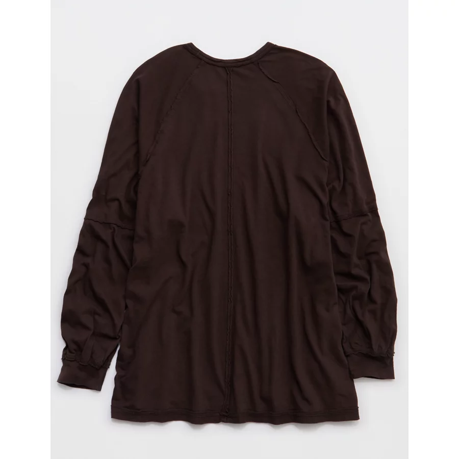 Aerie Cozy Long Sleeve Oversized Boyfriend T-Shirt – Deep Earth