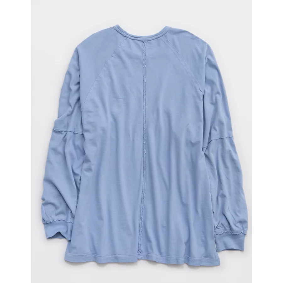 Aerie Cozy Long Sleeve Oversized Boyfriend T-Shirt – Monaco Blue