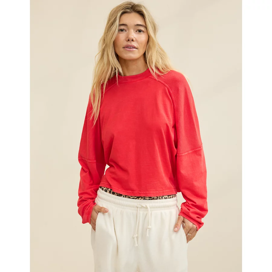 Aerie Cozy Mock-Neck T-Shirt – Bright Red