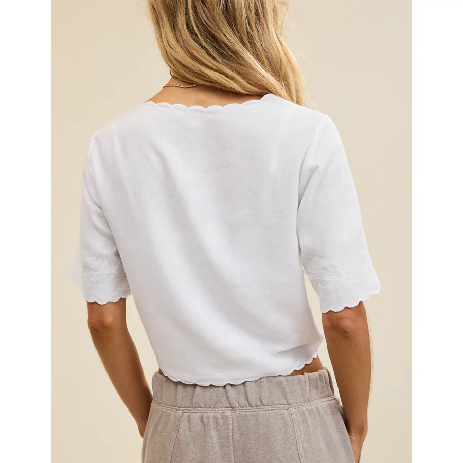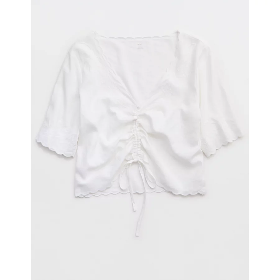 Aerie Cropped Cinch Front Top – White
