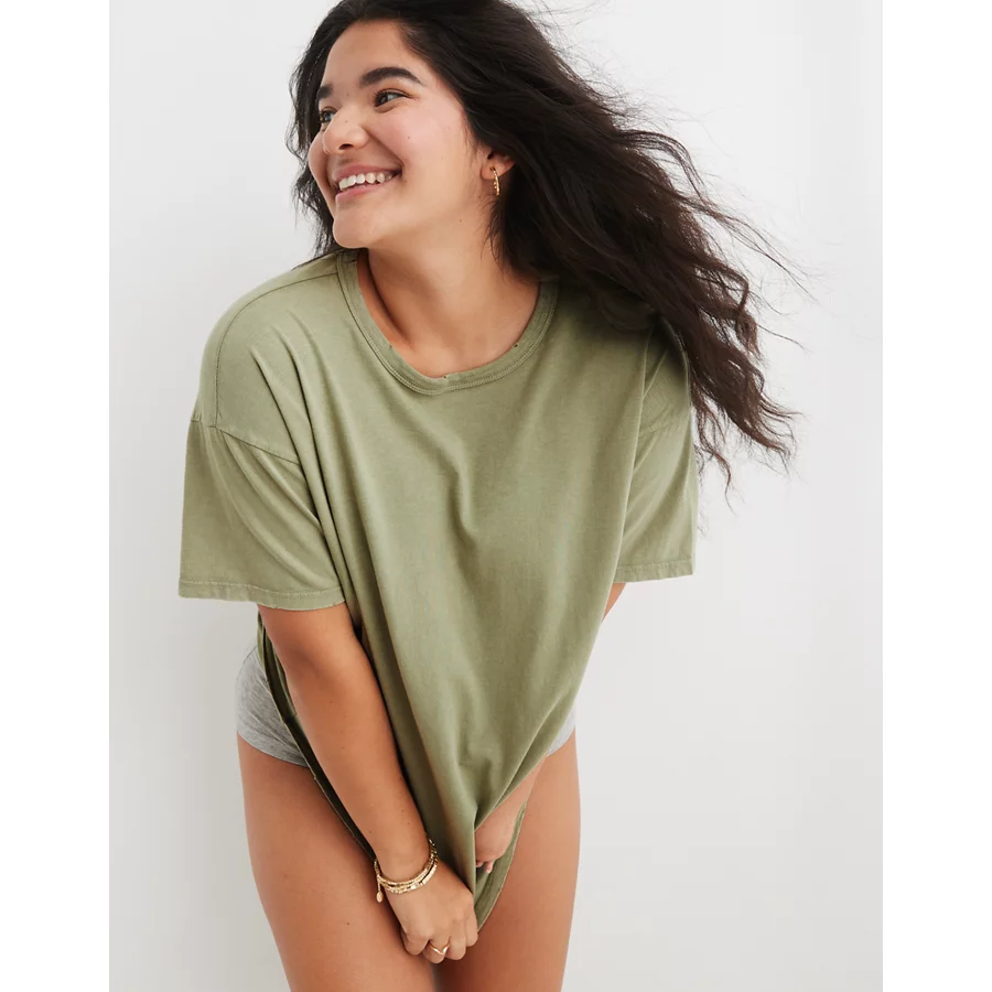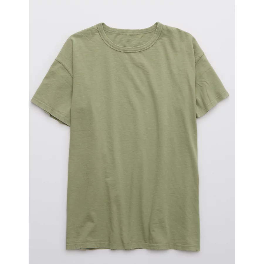Aerie Distressed Basic Boyfriend T-Shirt – Faded Olive