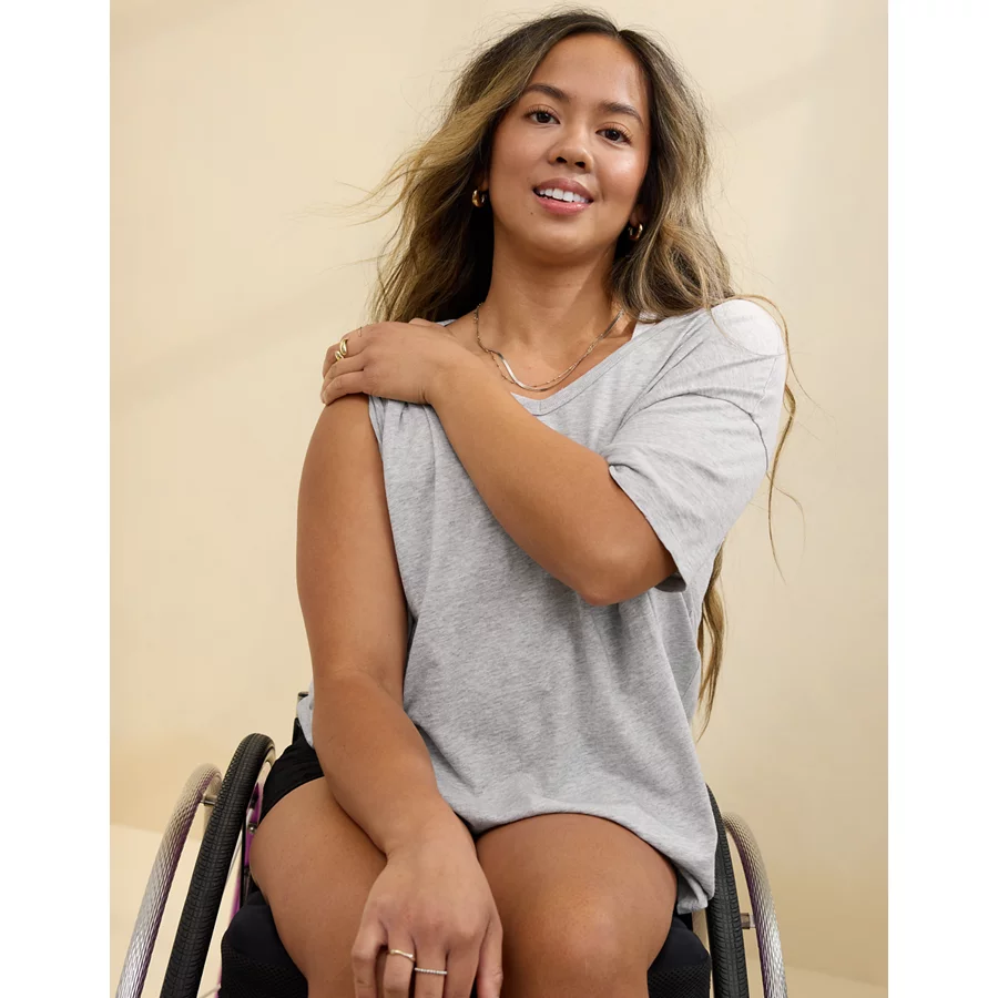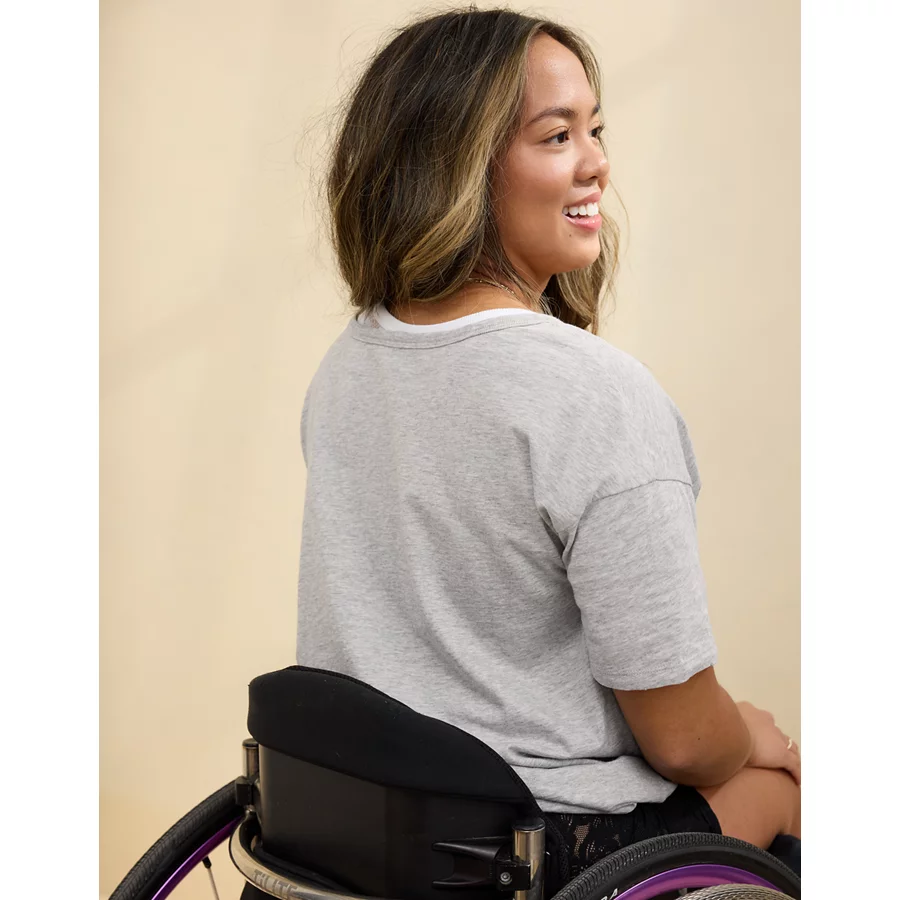 Accessibility deets: over-the-head access and tagless label to minimize irritation & maximize comfort!