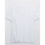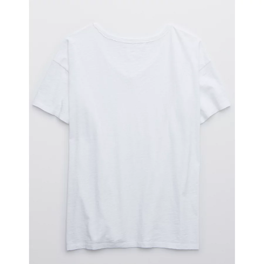 Aerie Distressed Basic V-Neck Boyfriend T-Shirt – White
