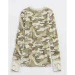 Aerie Essential Crew Layering T-Shirt – Olive Fun