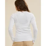 Real Good Everyday yarnRolled necklineRibbed trim on cuffs and hemPointelle deets and split cuffs on the sleevesThis style is heathered