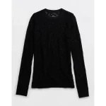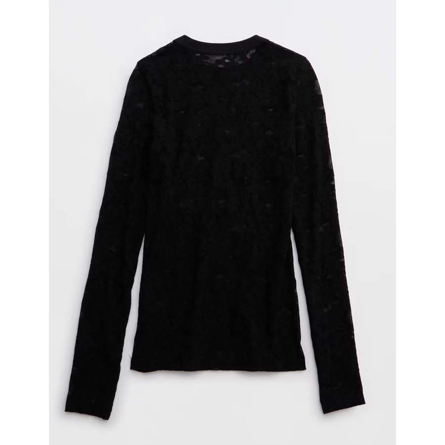 Aerie Essential Lace Layering T-Shirt – True Black
