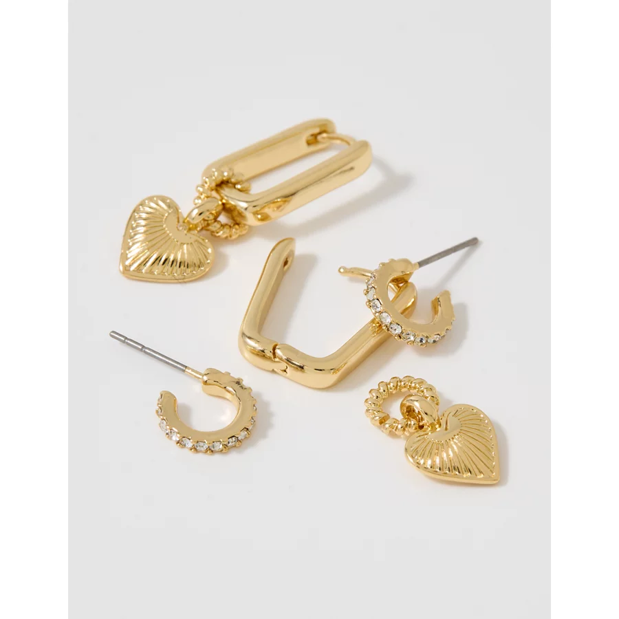 Aerie Etched Heart Hoop Earring Pack – Gold