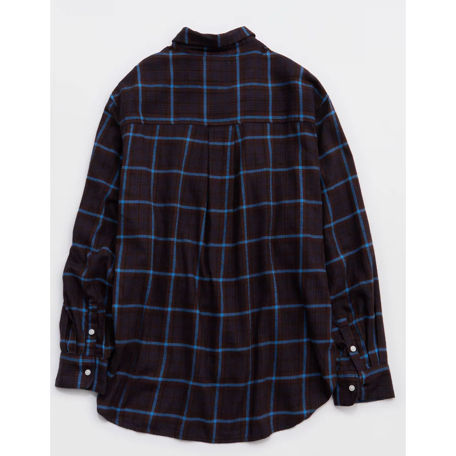 Aerie Anytime Fave Flannel Button Down Shirt – Dark Shadow