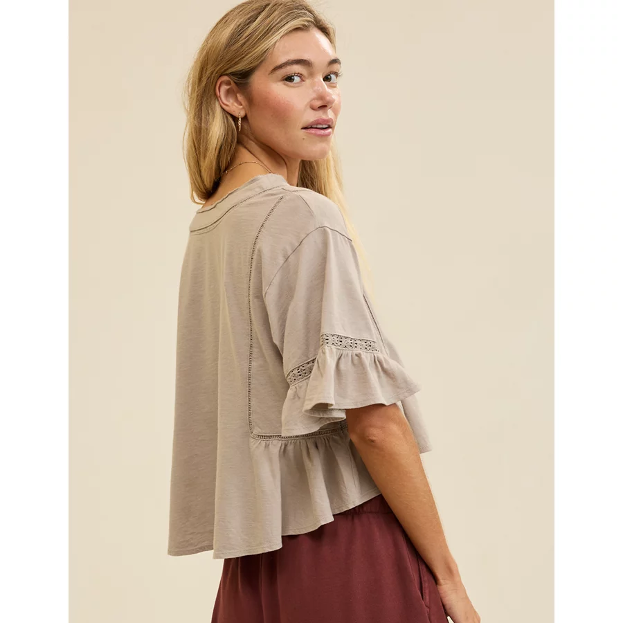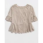 Aerie Flowy Cropped Notch Neck T-Shirt – Stone Harbor