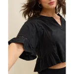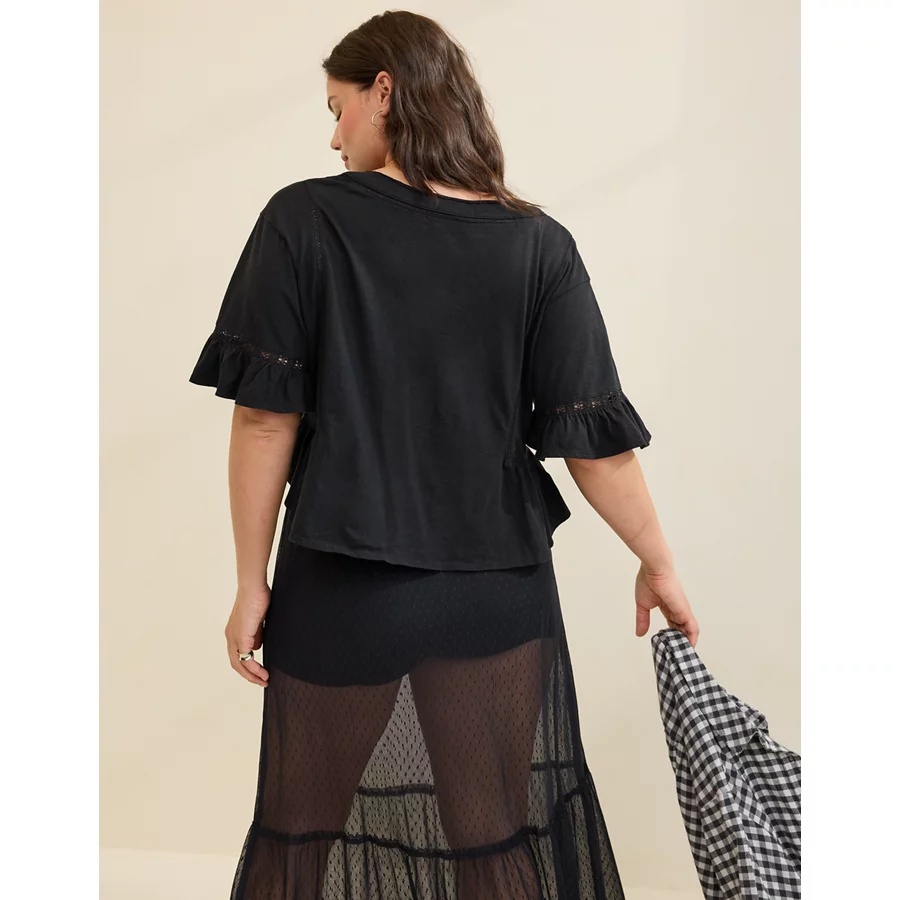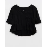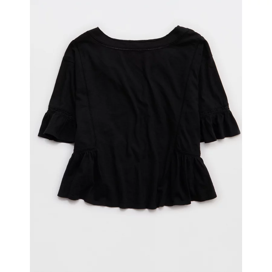 Aerie Flowy Cropped Notch Neck T-Shirt – True Black