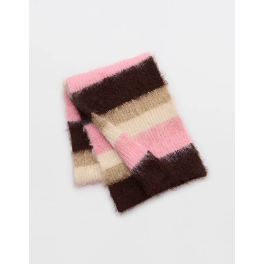 Aerie Fuzzy Stripe Scarf – Playful Pink