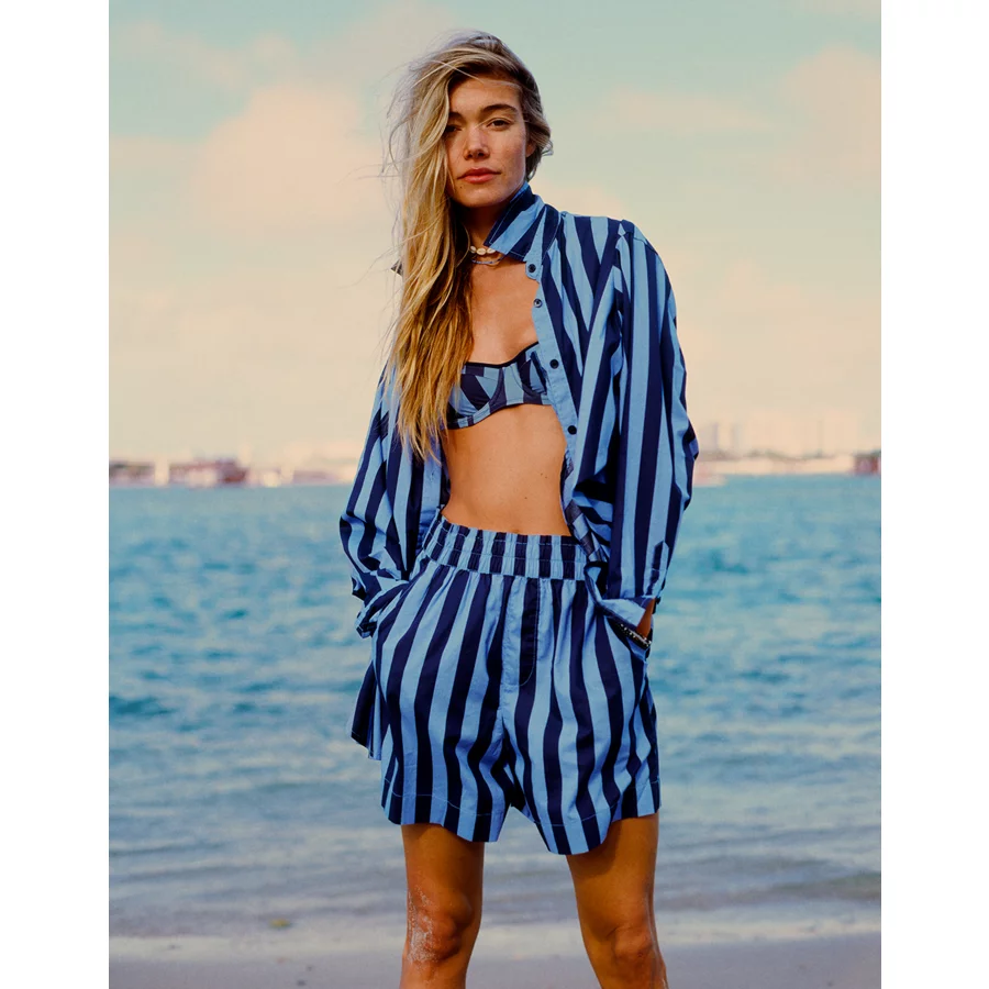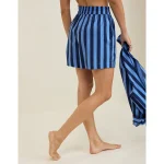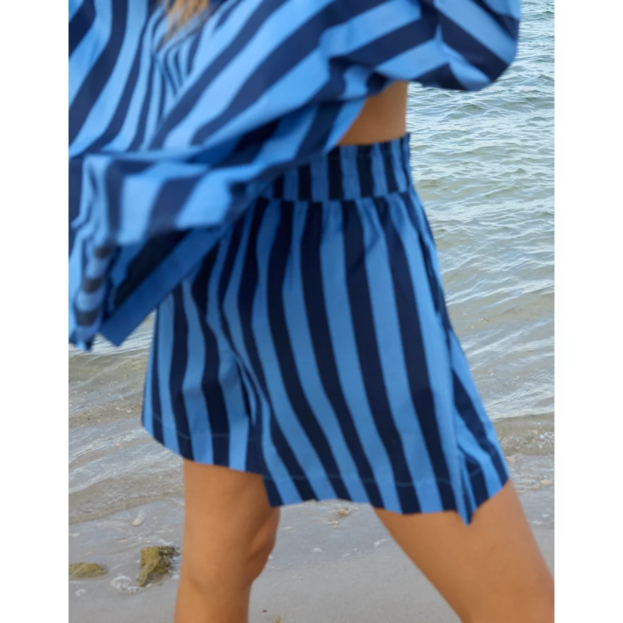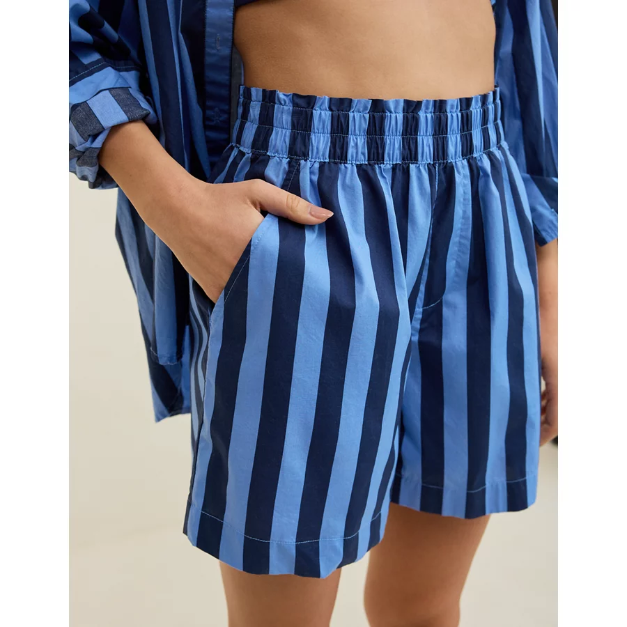Lightweight, airy cotton poplin in stripesElastic paperbag waistFunctional button front with drawstringLined with boxer shorts 100% CottonMachine washImported Mini length