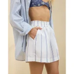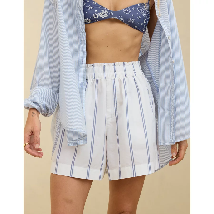 Lightweight, airy cotton poplin in stripesElastic paperbag waistFunctional button front with drawstringLined with boxer shorts 100% CottonMachine washImported Mini length