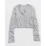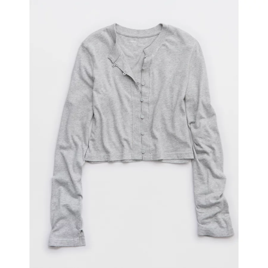 Aerie Happy Snit Cardi T-Shirt – Medium Heather Gray