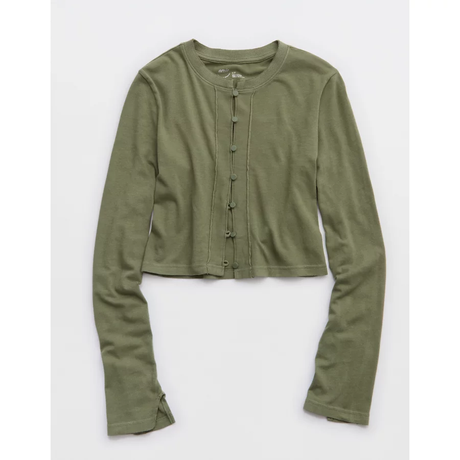 Aerie Happy Snit Cardi T-Shirt – Olive Fun