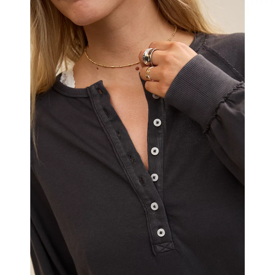 Aerie Happy Snit Henley T-Shirt – Smoked Gray