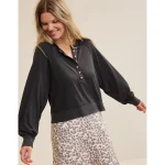 Aerie Bambi Real Soft® Piping Pajama Shirt – Smoked Gray
