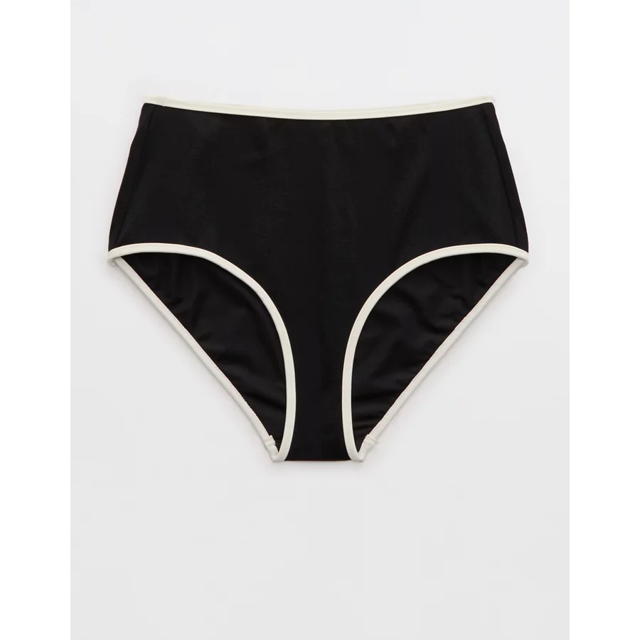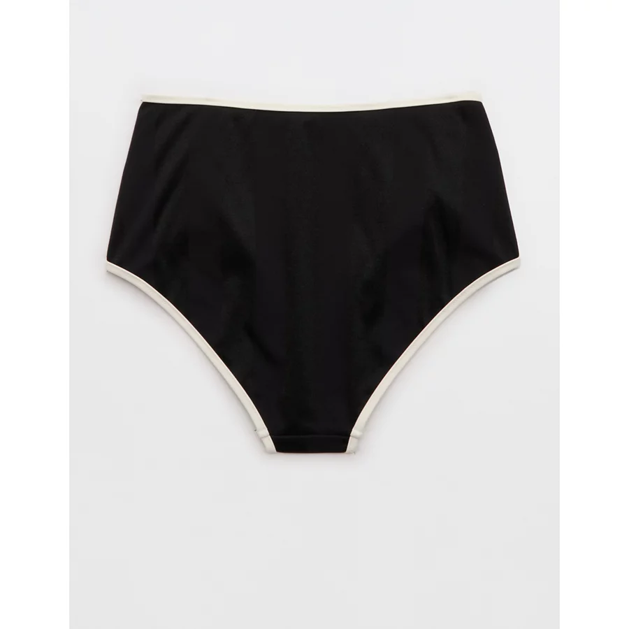 Aerie High Waisted Shine Bikini Bottom – True Black