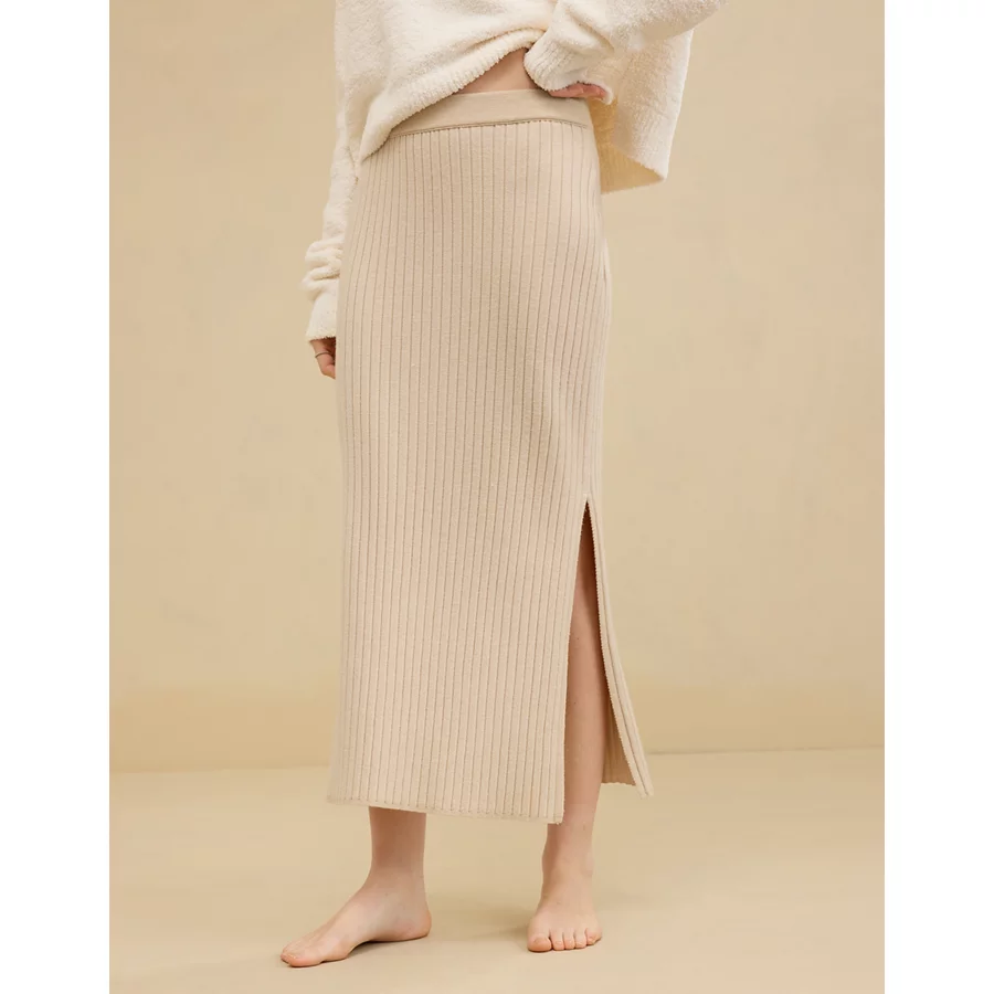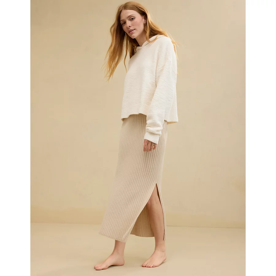 Aerie Late Night Midi Skirt - Light Heather Gray