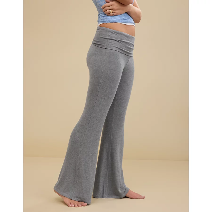 Aerie Let's Bounce Foldover Bootcut PJ Pant - Heather Frost