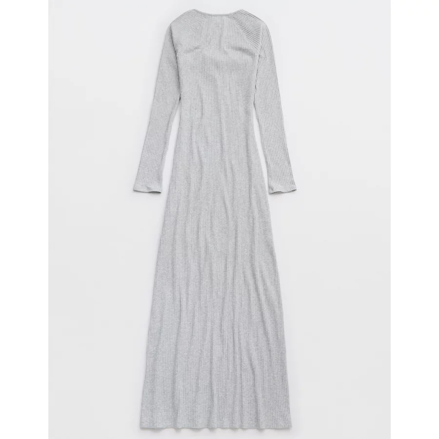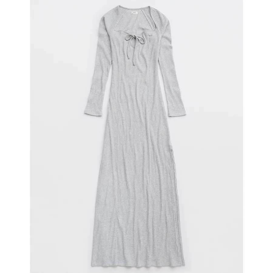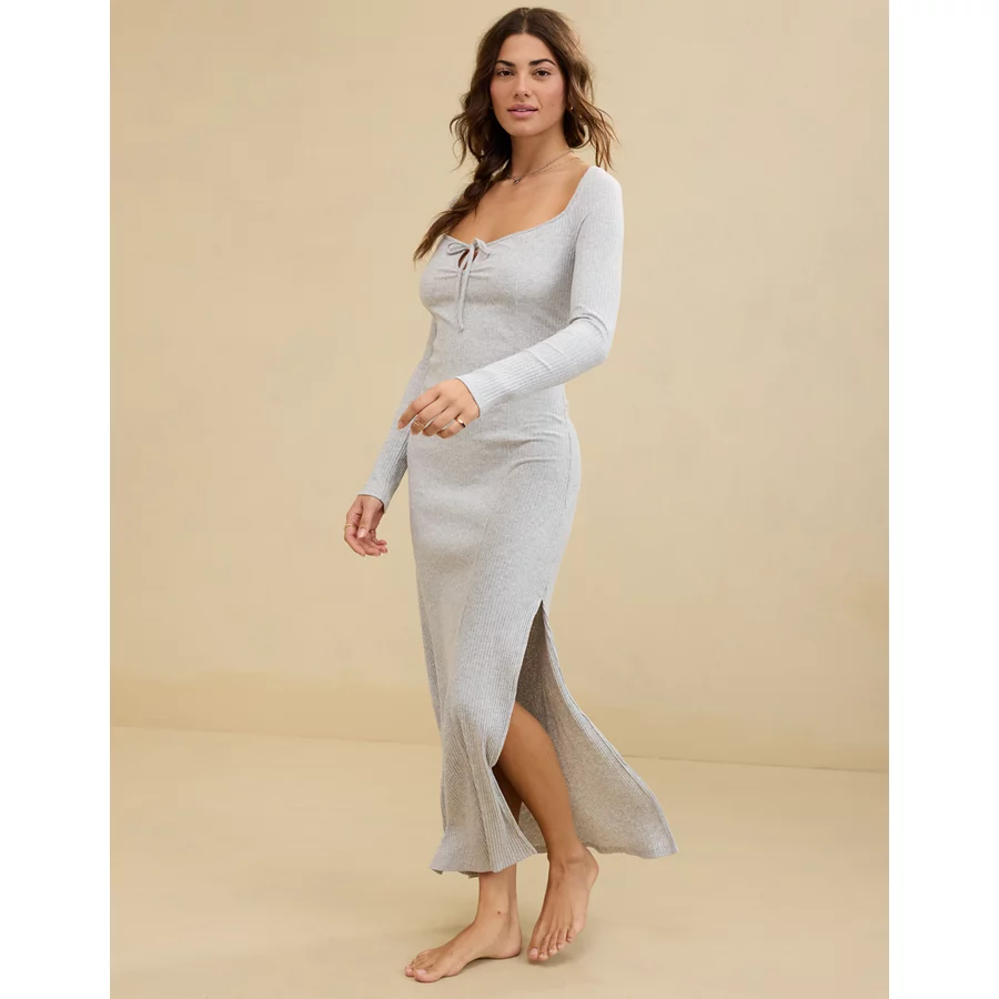 Aerie Long Sleeve Knit Tie Front Maxi Dress – Medium Heather Gray