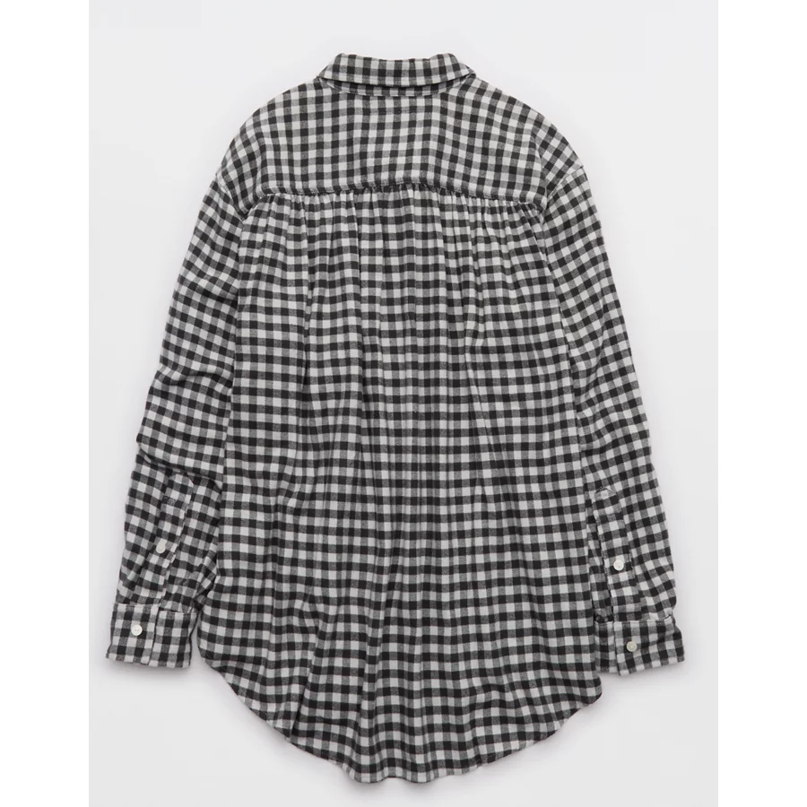 Aerie Anytime Fave Flannel Button Down Shirt – Dark Shadow