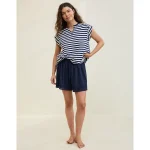 Lightweight, airy cotton poplin in stripesElastic paperbag waistFunctional button front with drawstringLined with boxer shorts 100% CottonMachine washImported Mini length